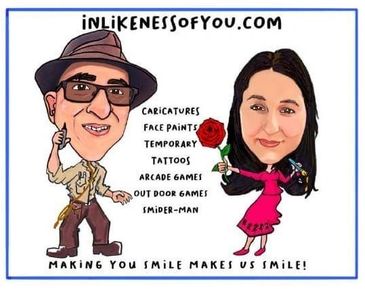Timothy and Andreea Baker offer a wide variety of Caricatures, Temporary Tattoos, and Face Painting for all ages. With over 10 years of professional entertainment services, they are the one stop Family Shop.